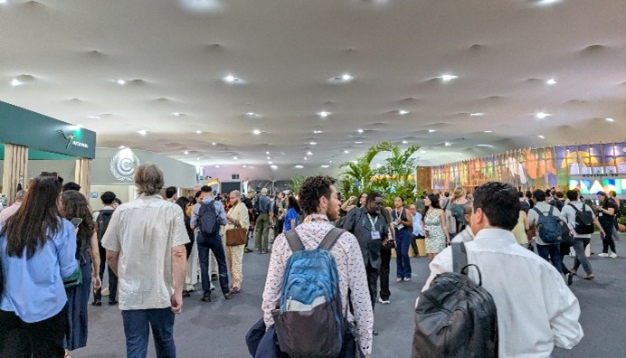 日中の気温が30℃を超え湿度も非常に高いアマゾンの熱帯雨林気候の中、会議がはじまった。11月はブラジルで最も暑くなる月であり、朝晩はマラリアやジカ熱を媒介する蚊に注意を払い、急なスコール対策も欠かせない。このような気候であることから、服装については「スマートカジュアル」が推奨され、会場は比較的ラフな服装で参加している人も多く見受けられる。