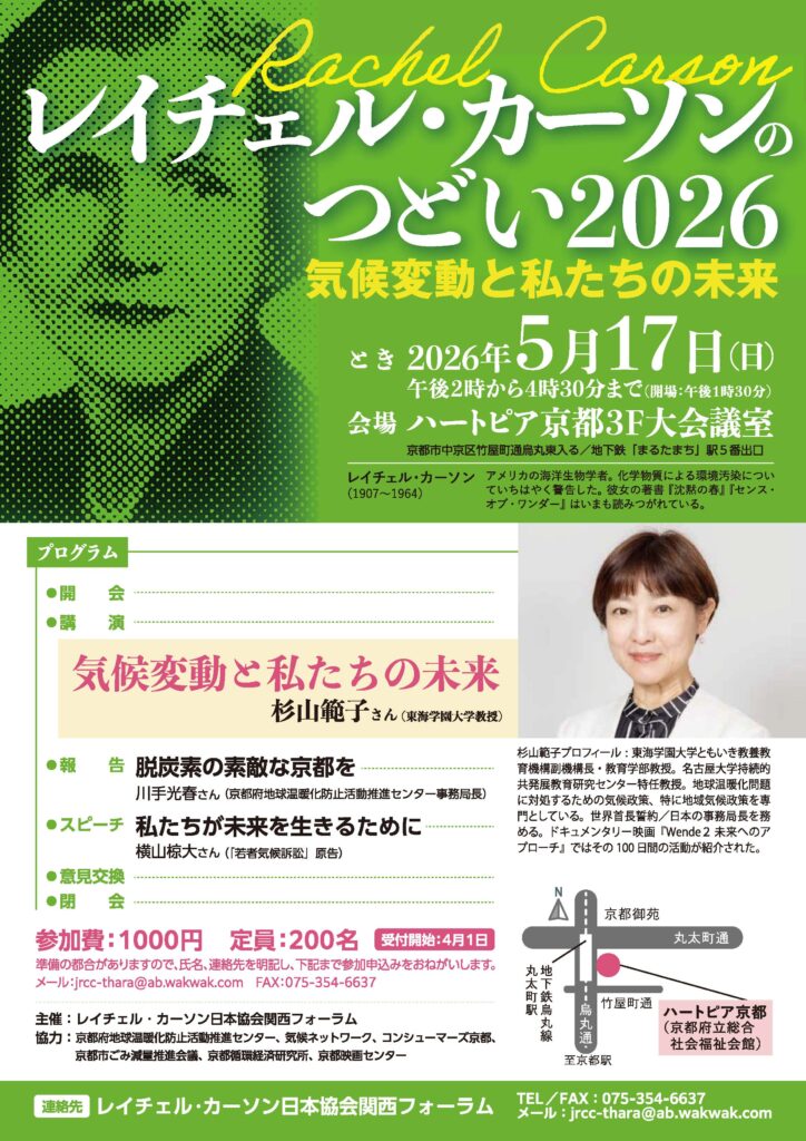 | イベントタイトル | レイチェル・カーソンのつどい2026‐気候変動と私たちの未来‐ |
