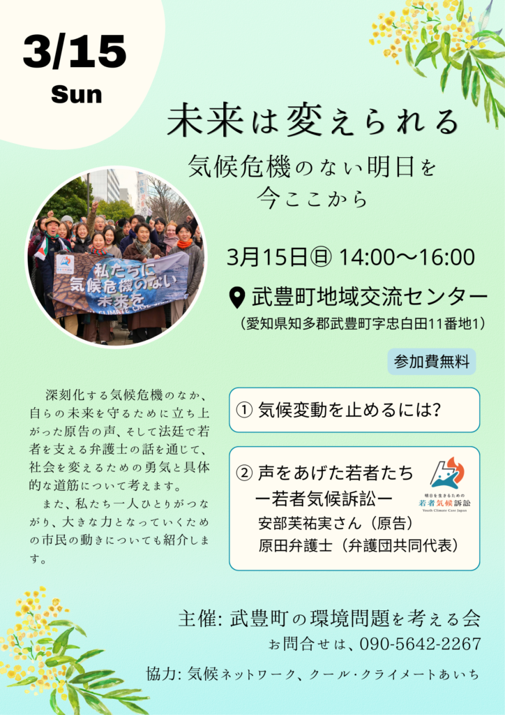 | イベントタイトル | 未来は変えられる ー気候危機のない明日を 今ここからー |